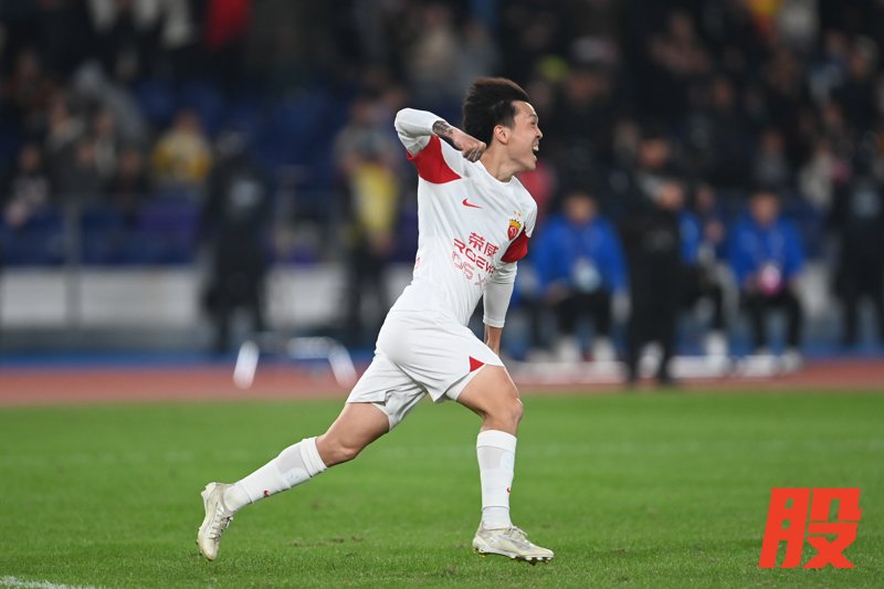 2024年11月23日,上海海港队球员王振澳庆祝进球。\n 当日,在浙江温州奥体中心体育场举行的2024赛季中国足球协会杯决赛中,上海海港队3比1战胜山东泰山队,获得冠军。\n 新华社记者 黄宗治 摄