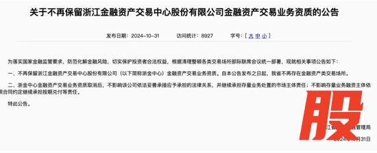 其中,浙金中心此前全称:浙江金融交易中心,目前更名为:浙江浙金资产运营股份有限公司。就在2024年10月,浙金中心被取消交易资质,虽不影响存量业务,但对于风险敏感的投资者来说,会第一时间进行提现。