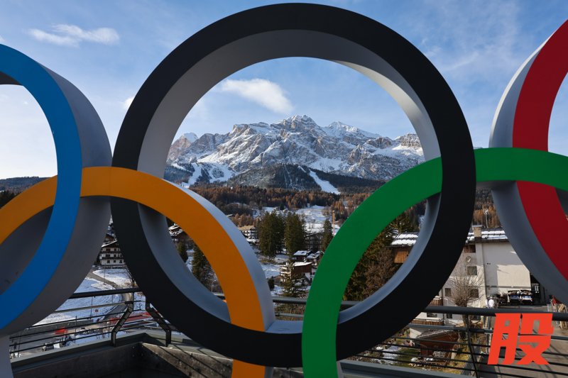 意大利科尔蒂纳丹佩佐拍摄的奥运五环与城镇景观。